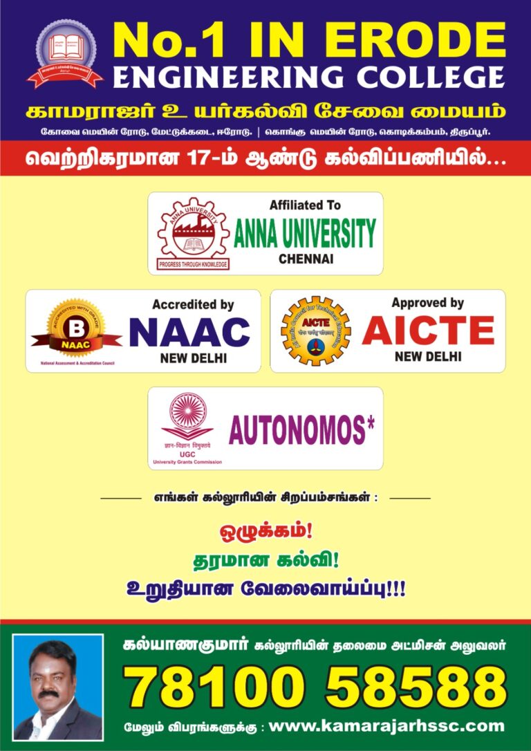 காமராஜர் உயர்கல்வி சேவை மையம் கடந்த 10 ஆண்டுகளாக உயர்கல்விக்கான சேவையில் ஈடுபட்டுள்ளது. தொழில் நகரங்கள் நிறைந்த கொங்கு மண்டலத்தில், திருப்பூரில் தலைமை அலுவலகத்துடன் கோவை மற்றும் ஈரோட்டில் கிளைகளை கொண்டும் செயல்பட்டு வருகிறது. இதன் அமைப்பாளரும் கல்லூரி அட்மிஷன் அலுவலரும் ஆன திரு. கல்யாணகுமார் ஏழை எளிய மாணவர்களின் உயர் கல்வி வளர்ச்சிக்கு முக்கிய பங்காற்றி வருகிறார்.